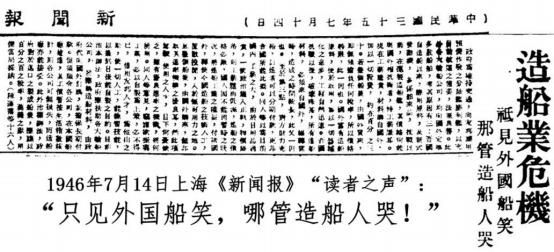 上海《新闻报》为此刊出“读者之声”,题为《造船业危机——只见外国船笑,那管造船人哭》!